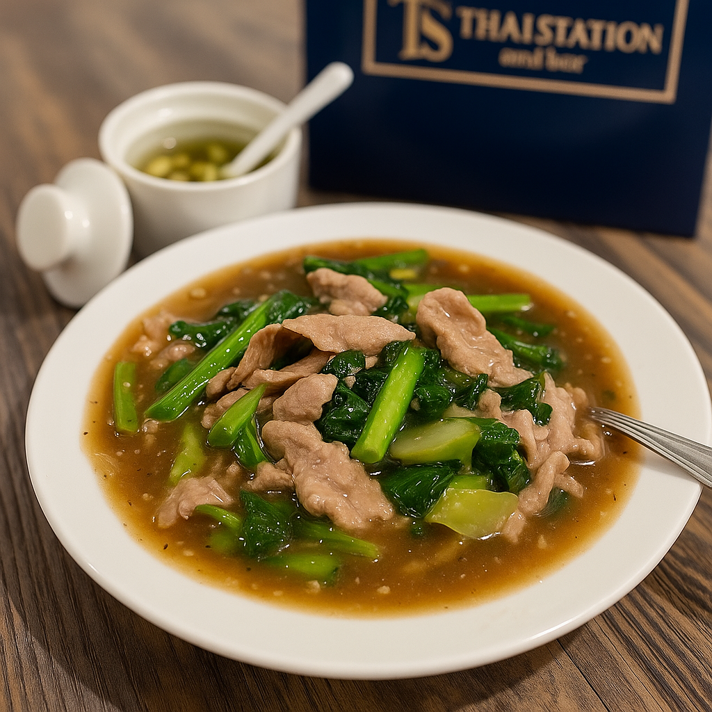 Wide rice noodle with gravy and Chinese broccoli. Chicken, Pork, Tofu – $13 Beef, Shrimp – $15 Combination – $17 Seafood – $18