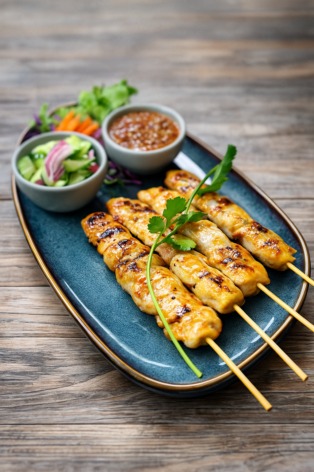 Served with peanut sauce and cucumber salad. Beef add $2.00.