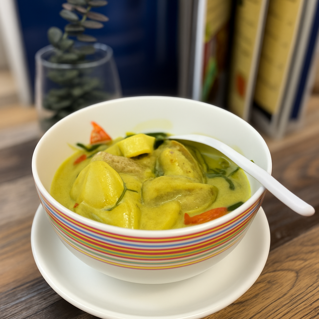 Green Curry Available Monday–Friday 11:00 AM – 3:00 PM…..Served with rice & crispy wontons(Add Thai Tea or Coffee $3)