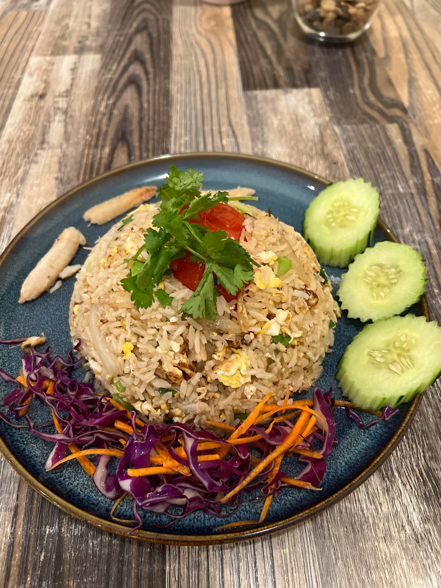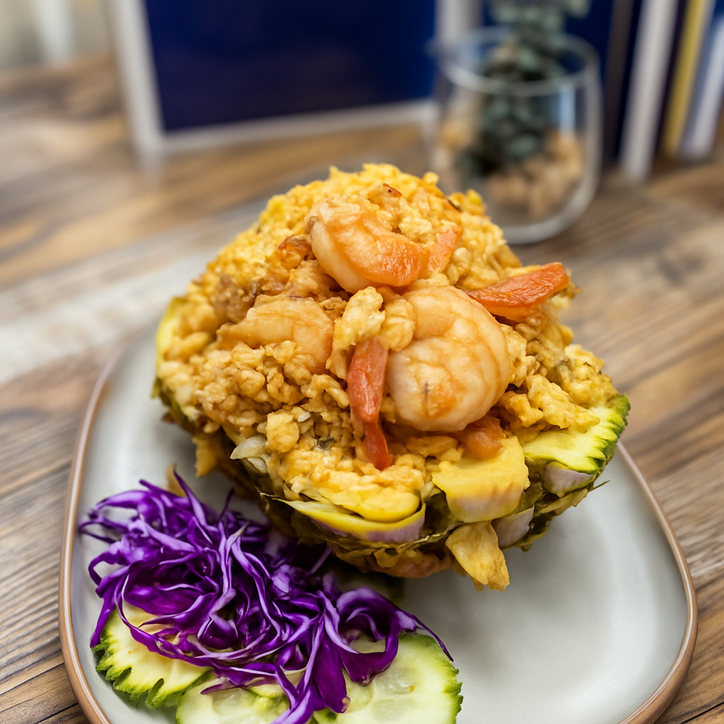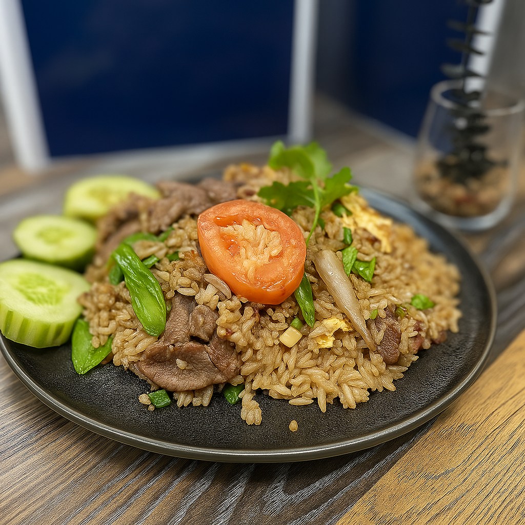 Stir-fried rice with Thai roasted chili paste, white onion, jalapeño and special sauce. Chicken / Pork