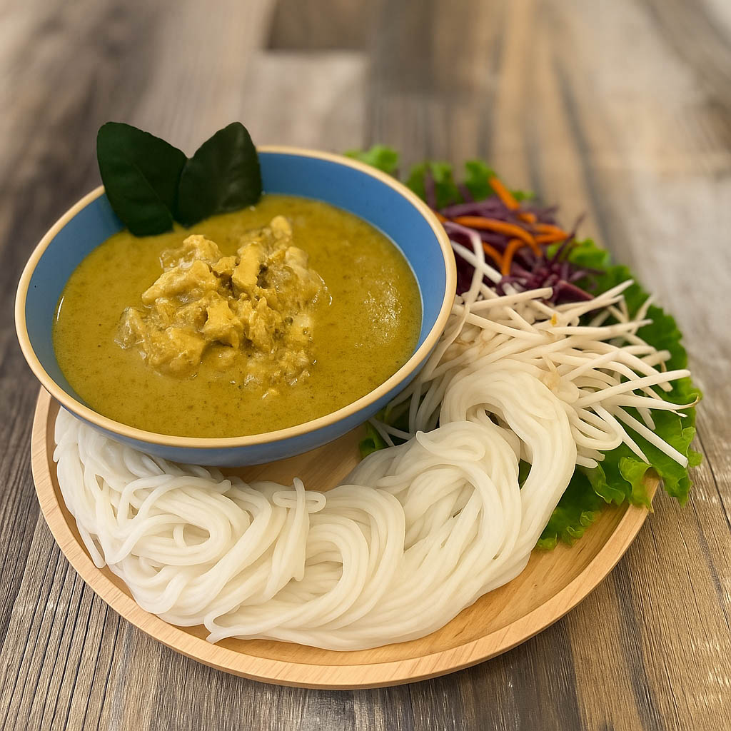 Rice vermicelli noodles served with rich Southern-style crab curry and coconut milk.